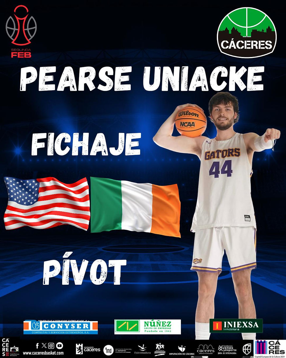 El Cáceres Patrimonio de la Humanidad hace oficial el fichaje de Pearse Uniacke (Estados Unidos/Irlanda, 19 de agosto del 2000), que se incorpora a la plantilla.
